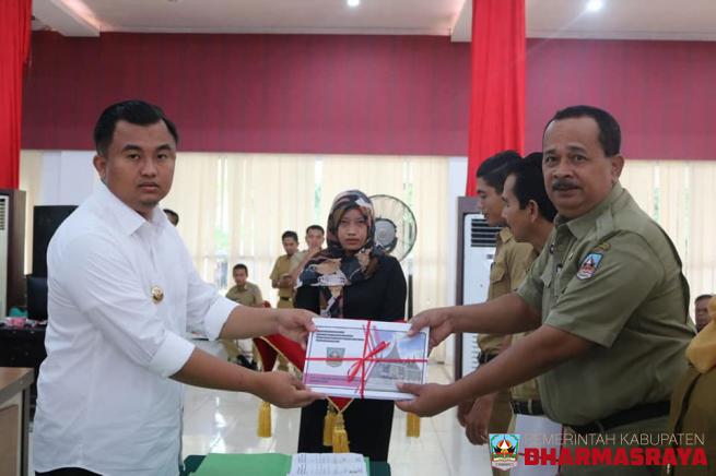 DHARMASRAYA - Bupati Dharmasraya, Sutan Riska Tuanku Kerajaan bersama Badan Pertanahan Nasional Kabupaten Dharmasraya menyerahkan sertifikat tanah program PTSL (Pendaftaran Tanah Sistematis Lengkap) tahun 2018 kepada masyarakat, di Kecamatan Koto Besar, Kamis (24/01).Dalam kesempatan yang turut diha...