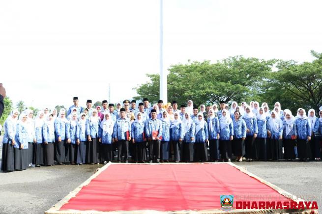 DHARMASRAYA - Segenap anggota Korps Pegawai Republik Indonesia (Korpri) Kabupaten Dharmasraya mengikuti upacara peringatan Hari Ulang Tahun Korpri ke 47, di Halaman Kantor Bupati Dharmasraya, Kamis (29/11). Bertindak sebagai inspektur dalam upacara tersebut, Wakil Bupati Dharmasraya, H. Amrizal...