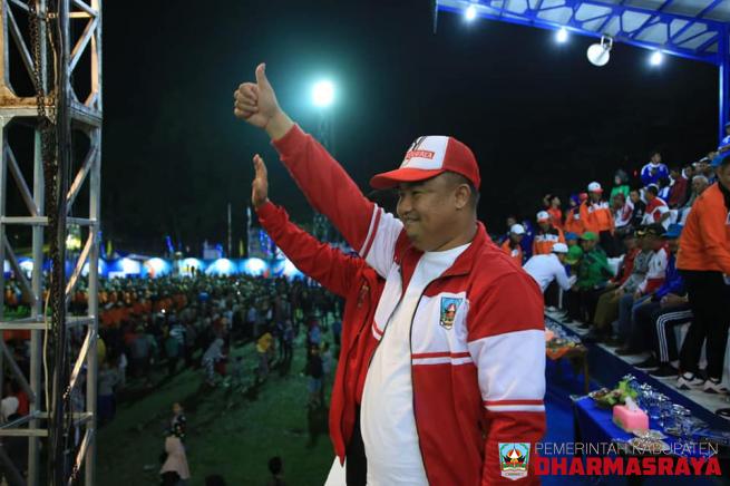 Dharmasraya---Bupati Dharmasraya, Sutan Riska Tuanku Kerajaan menghadiri acara pembukaan Pekan Olahraga Provinsi Sumatera Barat ke XV di Gelanggang Olahraga (GOR) Durian Nan Gadang Nagari Sungai Sariak, Kecamatan VII Koto Sungai Sariak, Kabupaten Padang Pariaman, Senin (19/11) malam.Pembukaan Porpro...