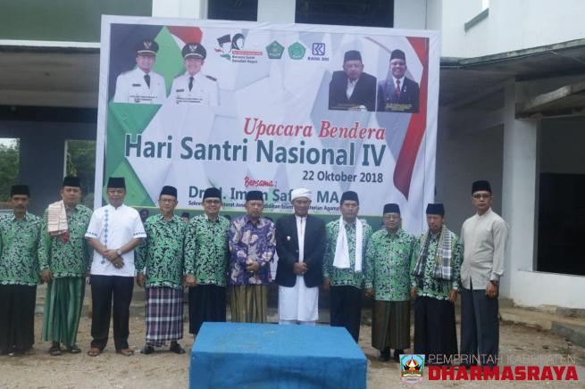 DHARMASRAYA - Hari Santri Nasional (HSN) ke IV di Kabupaten Dharmasraya diperingati dengan upacara yang diselenggarakan di halaman Pondok Pesantren Al Barokah, Koto Baru, Ahad (21/10). Wakil Bupati Dharmasraya Dharmasraya, H. Amrizal Dt Rajo Medan bertindak sebagai inspektur dalam upacara yang turut...