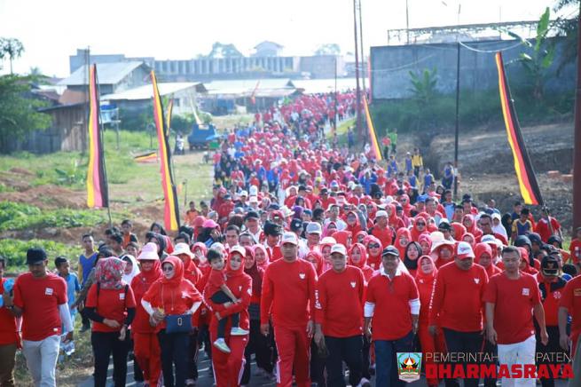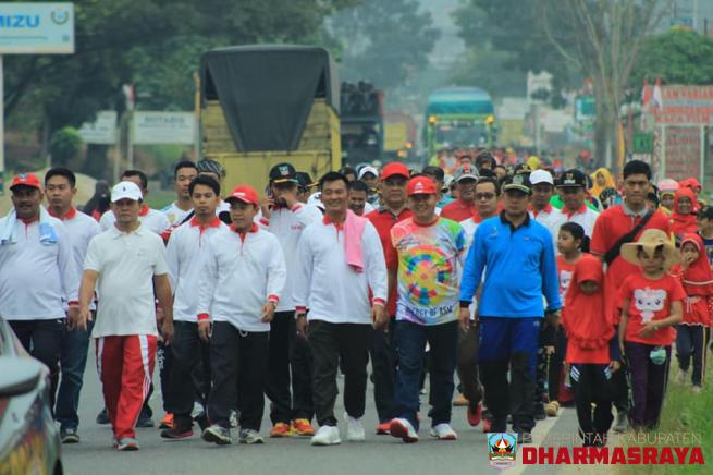 DHARMASRAYA - Ribuan masyarakat Nagari Sungai Kambuik Kecamatan Pulau Punjung turun ke jalan untuk mengikuti Jalan Santai yang diselenggarakan pemerintah nagari setempat, dalam rangka memeriahkan peringatan Hari Ulang Tahun Kemerdekaan Republik Indonesia ke 73, Ahad (19/08) pagi.Wakil Bupati Dharmas...